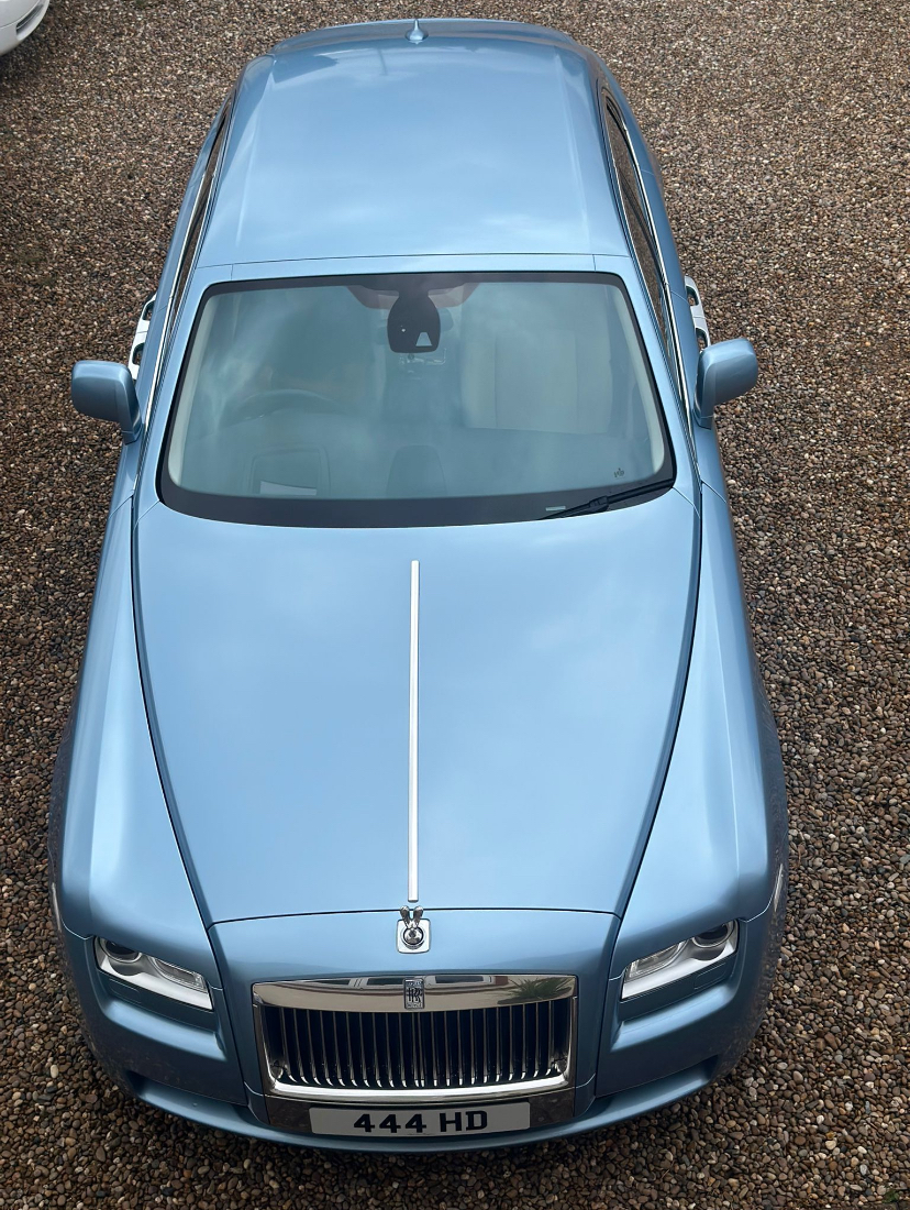 Our Rolls-Royce Ghost, powered by the iconic 6.75-litre twin-turbo V12 engine, is the epitome of modern luxury. Finished in a stunning ice blue with a hand-stitched black and ivory leather interior, this Ghost redefines understated elegance. Rolls-Royce remains the ultimate symbol of automotive excellence and prestige.